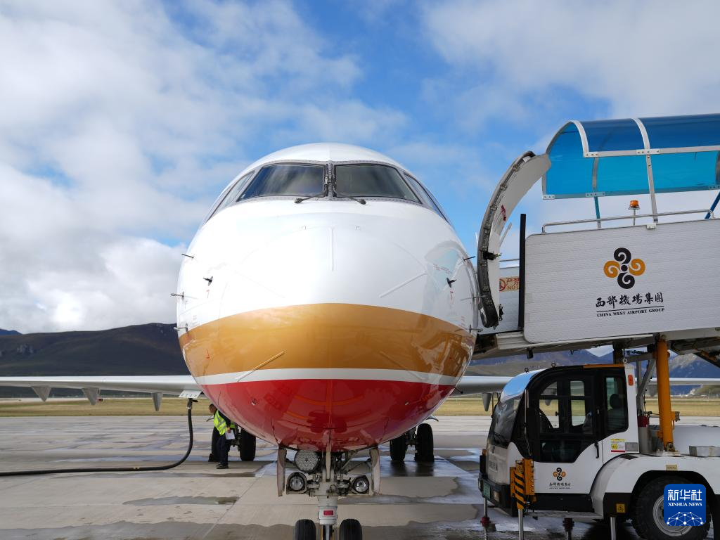 9月21日,國(guó)產(chǎn)商用飛機(jī)ARJ21停放在西藏拉薩貢嘎國(guó)際機(jī)場(chǎng)停機(jī)坪上。新華社記者 丁汀 攝