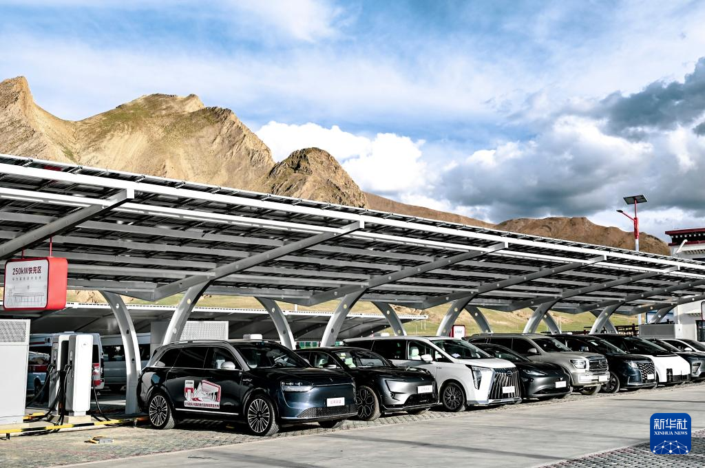 9月2日拍攝的日喀則市珠穆朗瑪國家公園北大門停車場內的珠峰光儲液冷超充站。新華社發