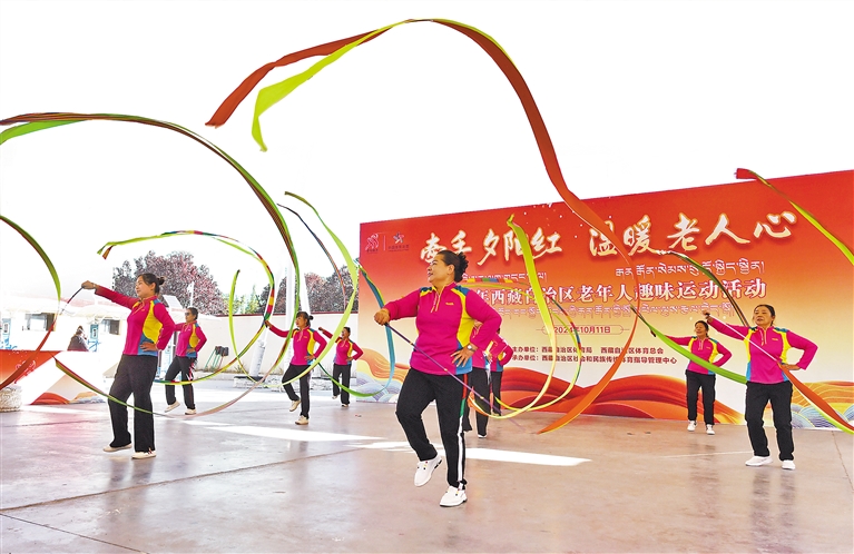 圖為2024年西藏自治區“牽手夕陽紅 溫暖老人心”老年人趣味運動活動現場。記者 唐斌 攝