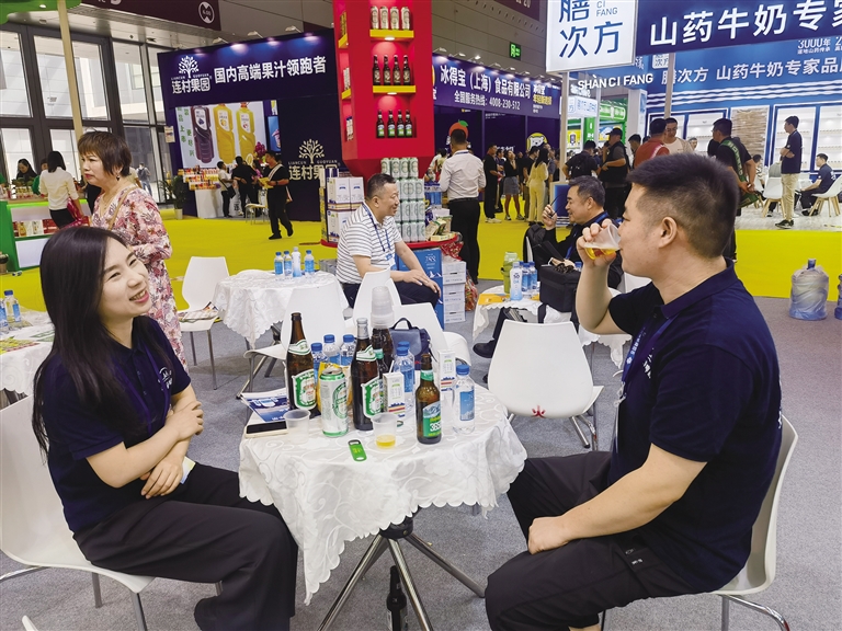 走進深圳會展中心,首先映入眼簾的是糖酒會各展區的熱鬧景象。而在飲料及酒類展區的一角,一座設計精美、特色鮮明的“拉薩好物”館格外引人注目。這里,拉薩市精心選取的7100礦泉水、高原牦牛乳、拉薩啤酒、西藏青稞白酒、青稞精釀啤酒等地域特色產品整齊排列,吸引了眾多國內外客商和消費者的駐足觀看和品嘗。