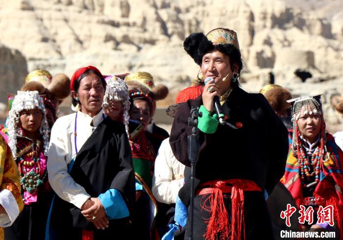 在恢弘的古格王朝都城遺址前,格瑪扎西群覺身著傳統服飾,彈起果沃琴,唱著阿里民歌,吸引當地民眾和游客駐足觀看。這場音樂會還現場呈現了宣舞等西藏各地獨具特色的非遺舞蹈,果沃琴與不同的民族樂器、西洋樂器碰撞交流,呈現出傳統與現代、民族與世界的融合。