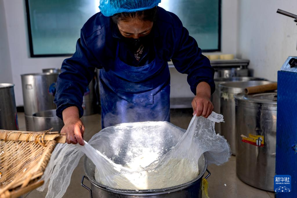 11月28日,在基地就業的當地員工索朗卓瑪在用傳統工藝制作奶渣。新華社記者 姜帆 攝