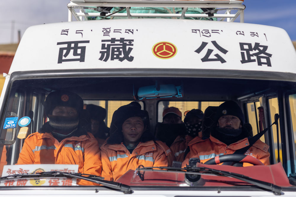 “天下第一道班”的養路工人們乘車去養護道路(12月1日攝)。新華社記者 姜帆 攝