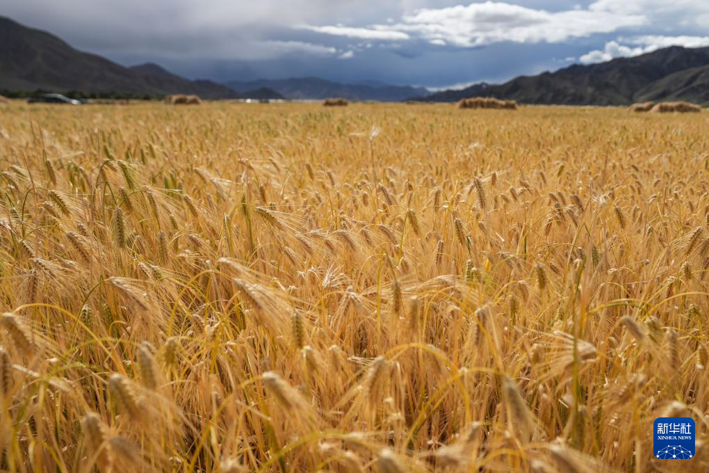 西藏日喀則市年楚河流域的青稞田(9月10日攝)。新華社記者 晉美多吉 攝