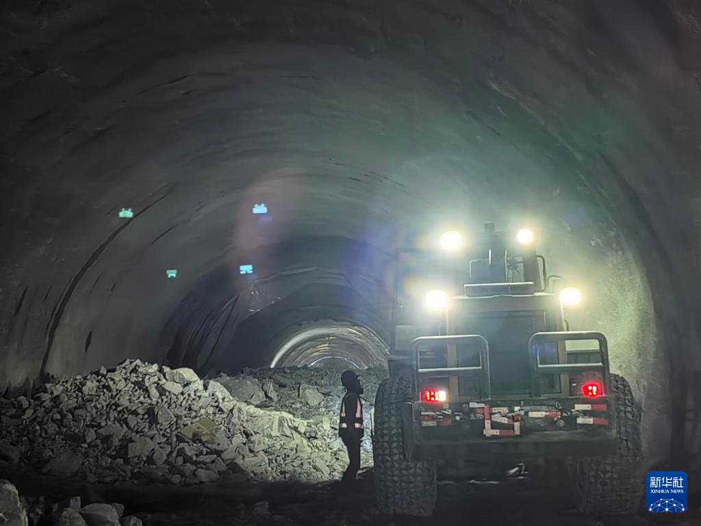 12月16日,中鐵二十局施工人員在然烏隧道內施工。新華社發(劉強攝)