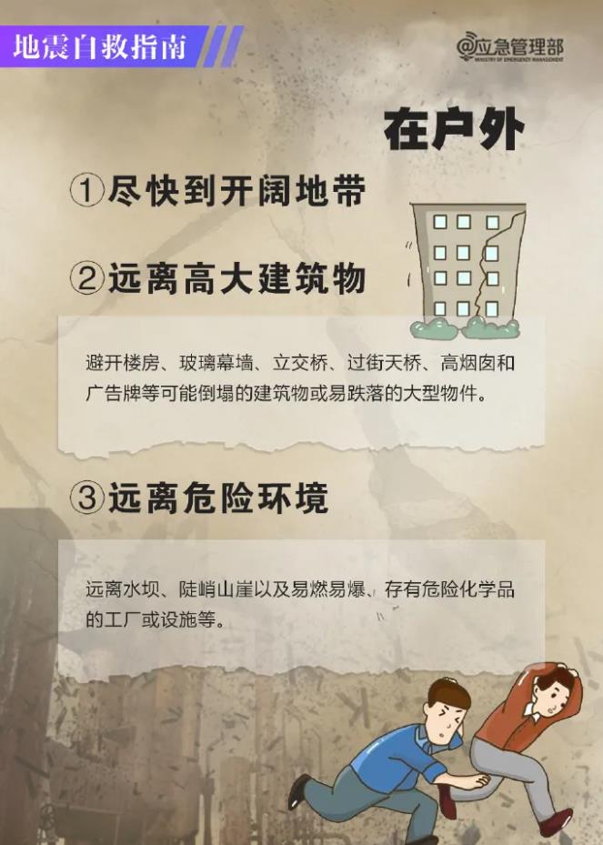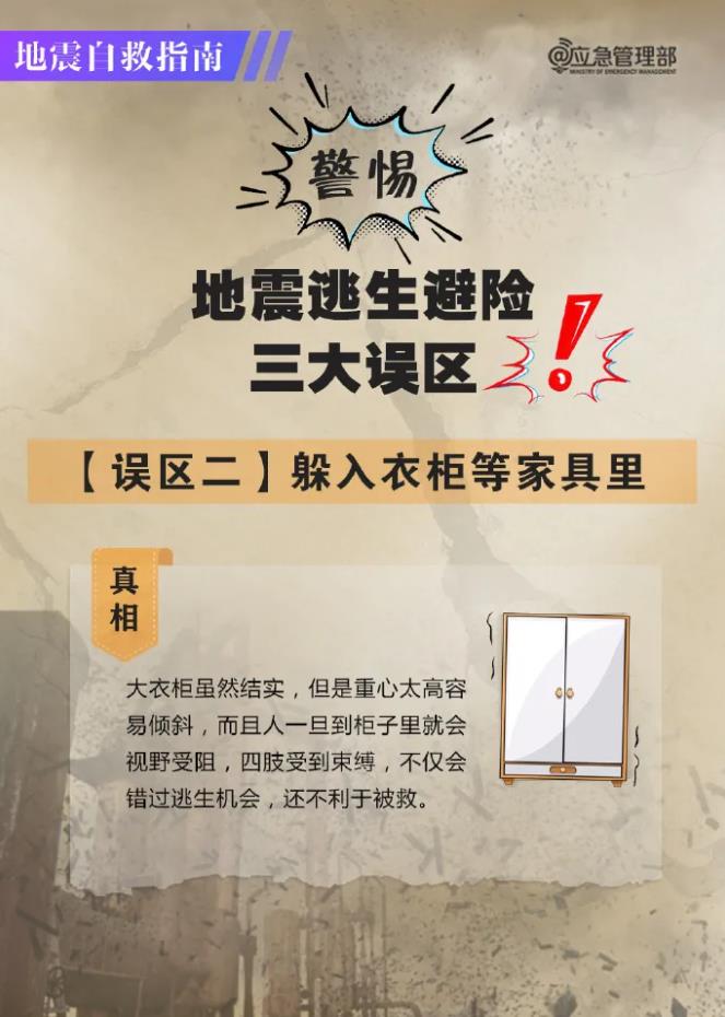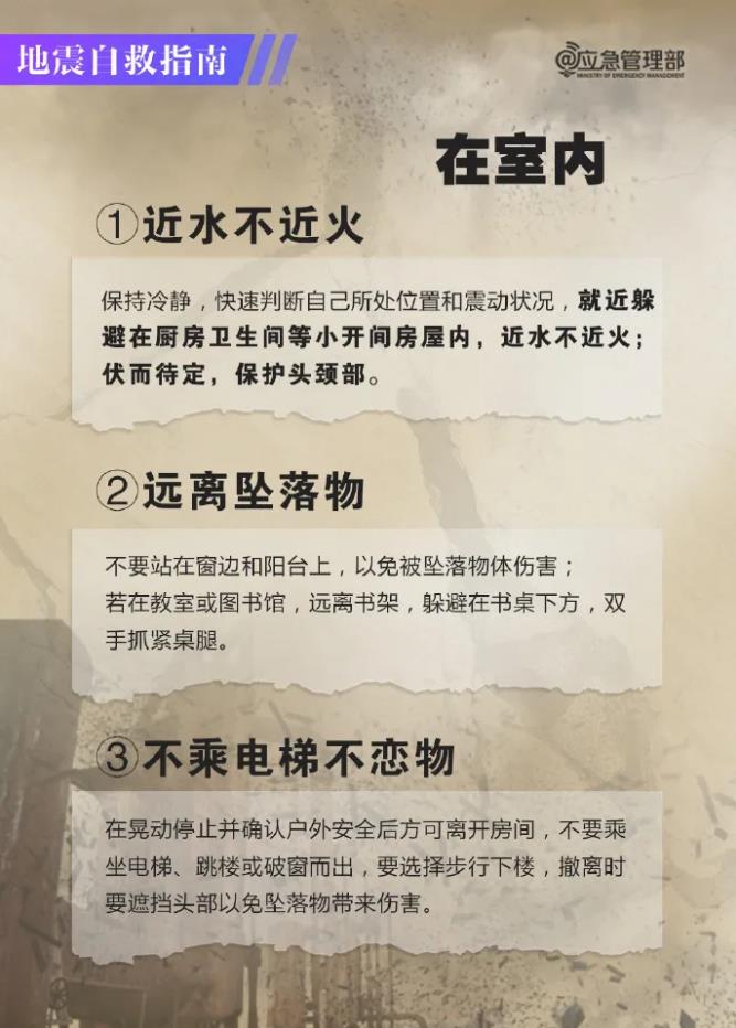 比如唐山地震我們總結(jié)了“震時就近躲避,震后迅速疏散”的方法,汶川地震我們總結(jié)了“能跑則跑,不能跑則躲”,一些強有感地震總結(jié)了“不能跳樓、不能盲目外逃”。