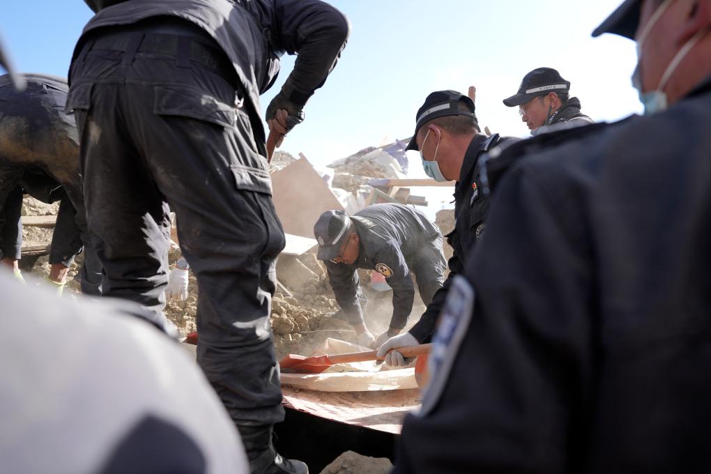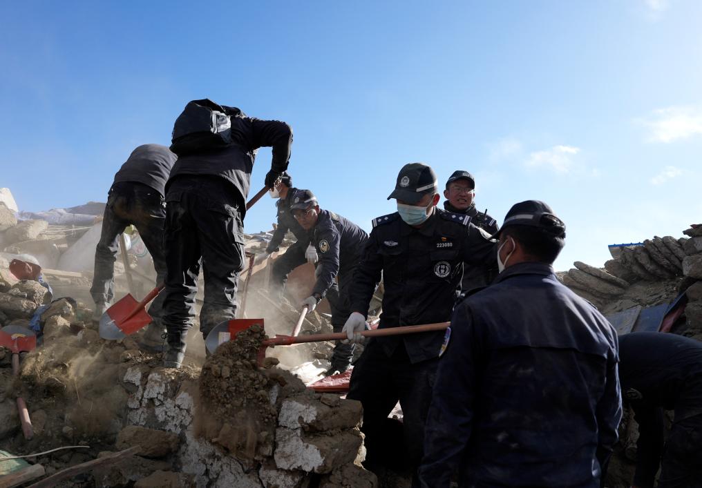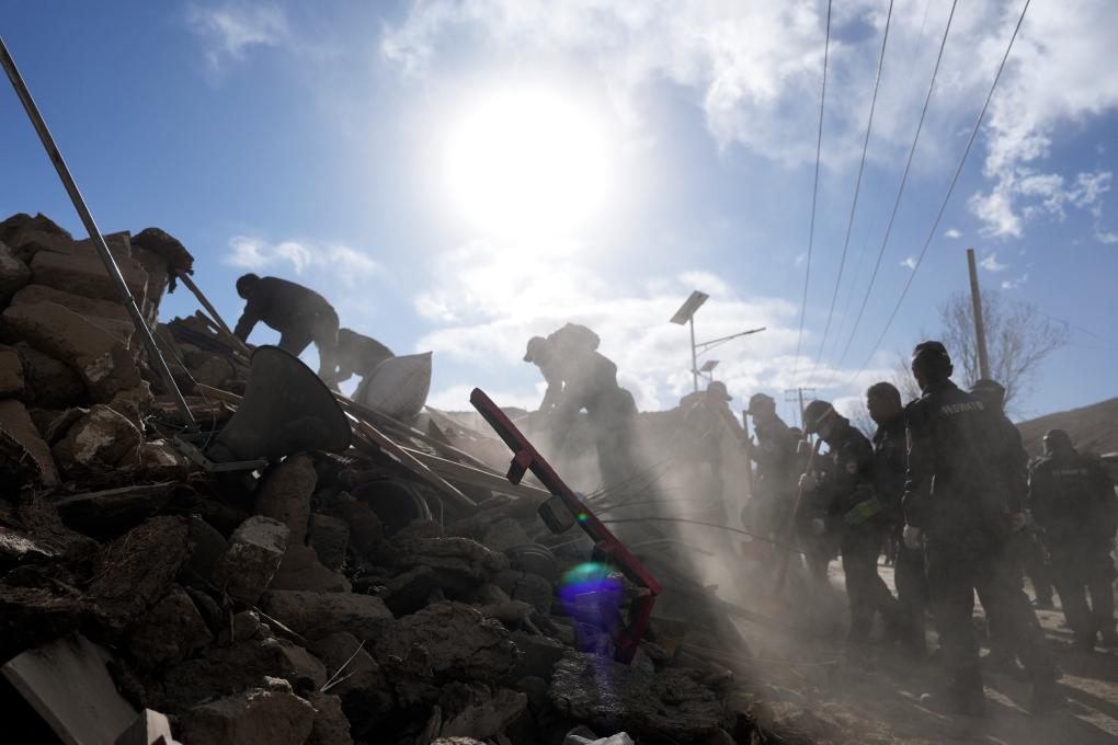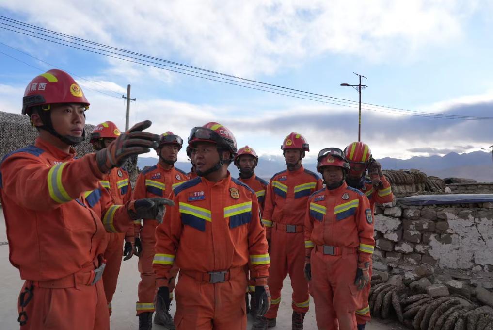 1月7日,救援人員在定日縣長所鄉古榮村進行搜救。