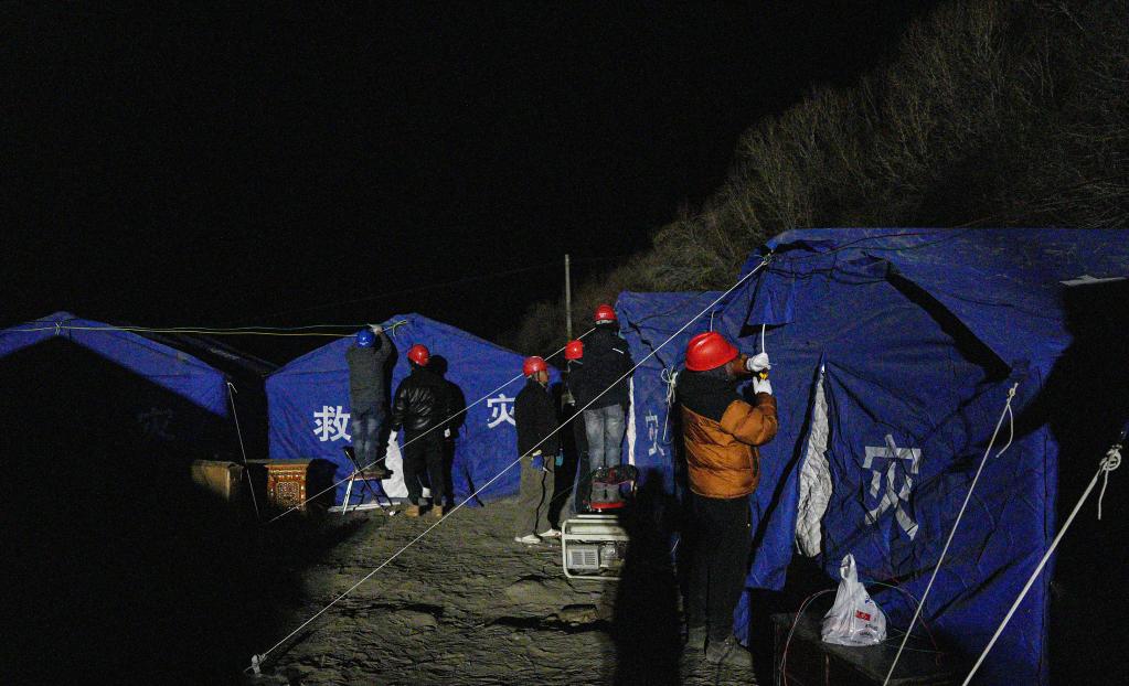 1月7日,在定日縣長所鄉集中安置點,工作人員在保障電力供應。