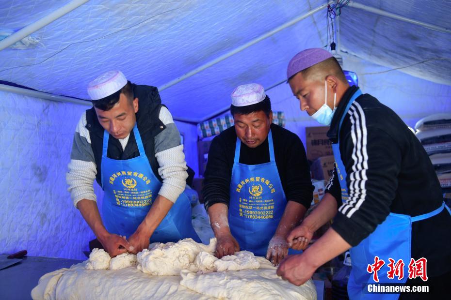 1月8日,西藏自治區日喀則市定日縣長所鄉強嘎村,愛心企業為受災民眾提供熱氣騰騰的牛肉面。1月7日9時5分,西藏自治區日喀則市定日縣發生6.8級地震,震源深度10公里。圖為愛心企業為受災民眾提供免費牛肉面。中新社記者 貢嘎來松 攝