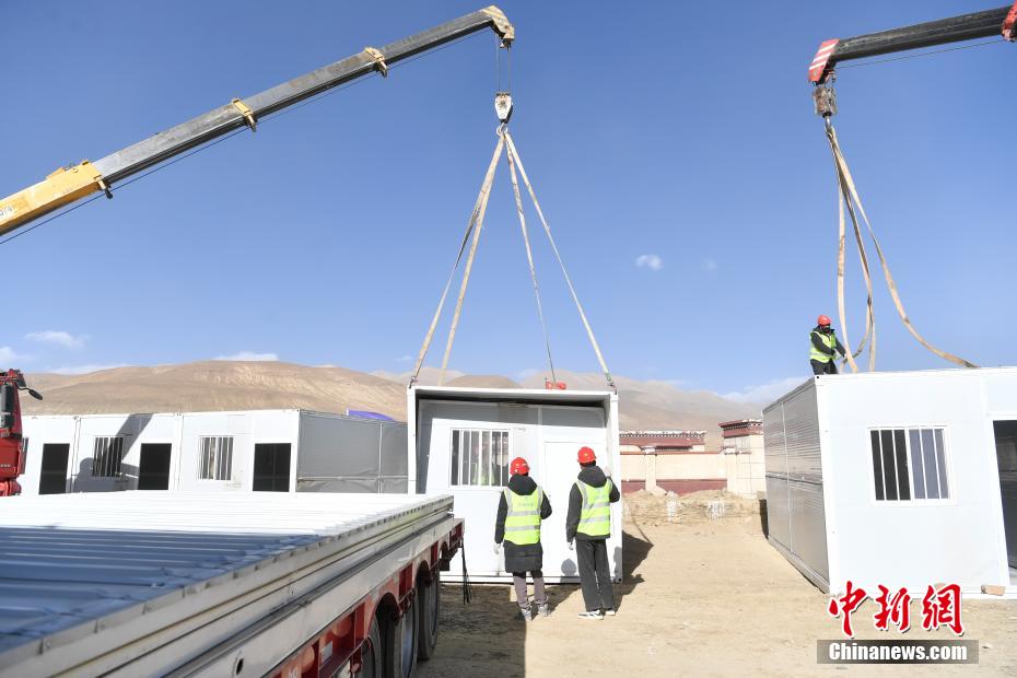 1月9日,西藏自治區定日縣曲洛鄉措昂村安置點,愛心企業為受災民眾搭建活動板房。當日,位于西藏自治區定日縣曲洛鄉措昂村安置點,西藏各級救援人員和愛心企業不斷轉運、發放生活物資、搭建活動板房、全力保障受災民眾的飲食供應等,保障受災民眾基本生活。中新社記者 貢嘎來松 攝