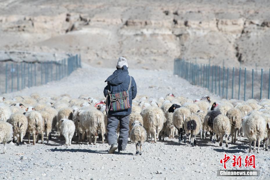 1月9日,西藏自治區定日縣曲洛鄉措昂村民眾在安置點附近放羊。當日,位于西藏自治區定日縣曲洛鄉措昂村安置點,西藏各級救援人員和愛心企業不斷轉運、發放生活物資、搭建活動板房、全力保障受災民眾的飲食供應等,保障受災民眾基本生活。中新社記者 貢嘎來松 攝