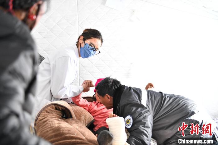 1月10日,西藏定日,醫(yī)護人員帶老人達娃的孫女去復查。 中新社記者 貢嘎來松 攝
