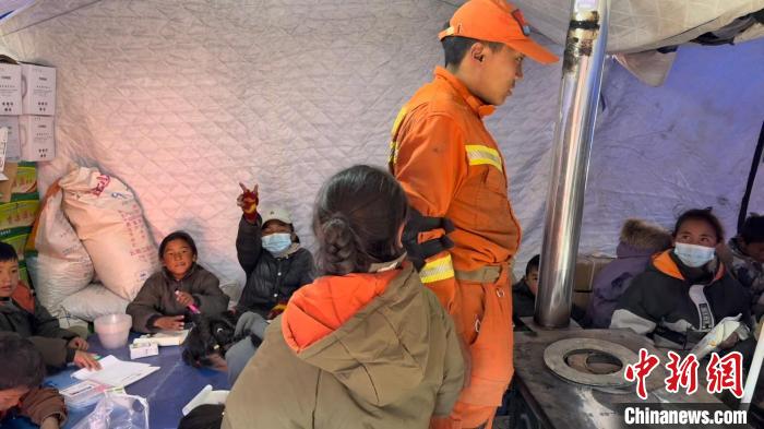 西藏定日縣發生6.8級地震后,孩子們的生活備受關注。平時工作中被稱做“開心果”的多吉在措果鄉野江村安置點上又成了“孩子王”,他帶著震區的小朋友們畫畫、撿垃圾、參觀消防車……安置點上時不時傳來孩童的歡聲笑語。