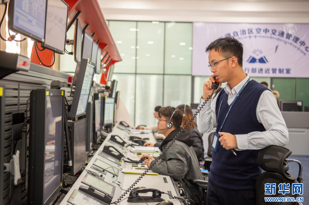 1月14日拍攝的西藏空管中心管制運輸部進近管制室。新華網 旦增努布 攝