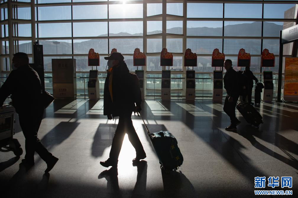 1月14日拍攝的拉薩貢嘎國際機場出發口。新華網 旦增努布 攝