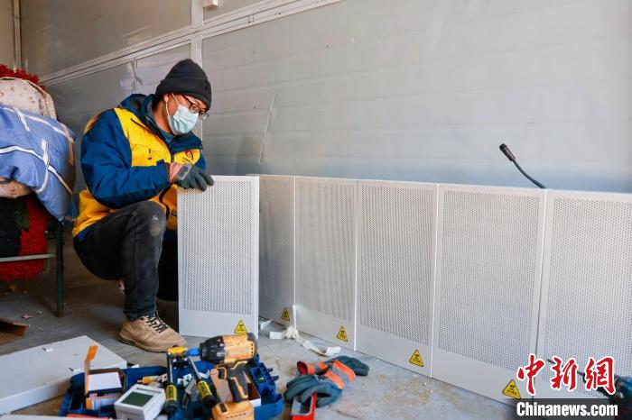 圖為西藏定日地震受災地區的安置板房內,工作人員正在安裝取暖器。北京慈福公益基金會 供圖