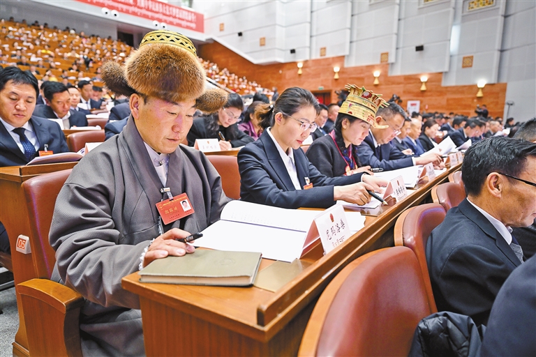 19日上午,自治區十二屆人大三次會議在拉薩開幕。圖為代表們認真聆聽政府工作報告。記者 旦增西旦 攝