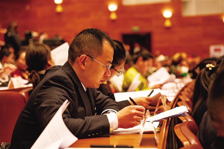 林芝市代表團審議政府工作報告。西藏日報記者 次仁平措 攝
