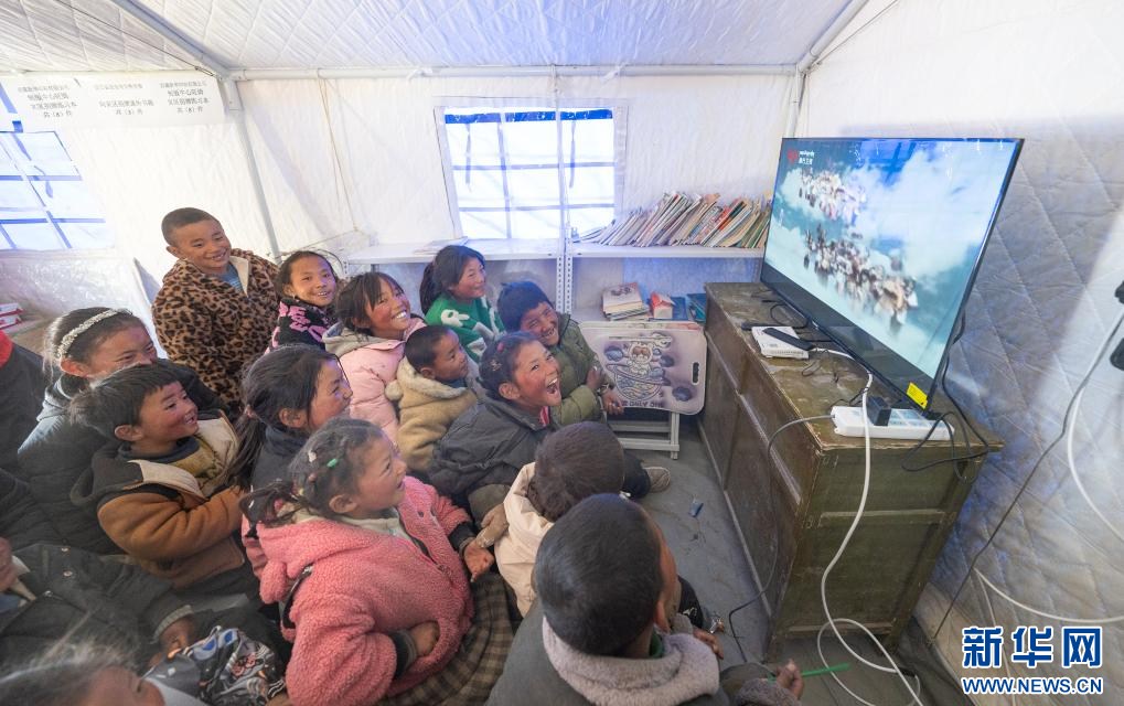 在定日縣長所鄉嘎布村,孩子們在看《西游記》(1月14日攝)。 新華社記者 丁增尼達 攝