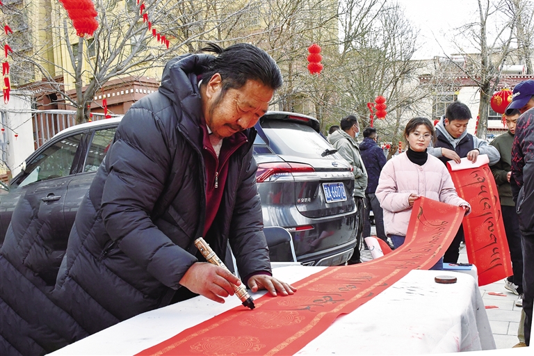 書法家給市民寫祝福語(yǔ)。記者 桑旦歐珠 攝