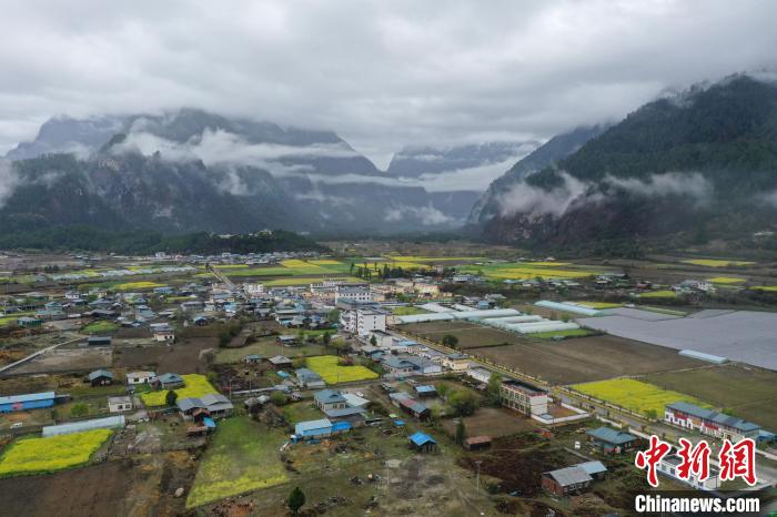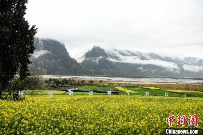 4月4日,西藏林芝市波密縣易貢鄉(xiāng)在雨后迎來絕美景致。云霧繚繞在群山之間,金黃的油菜花與森林、易貢湖、藏式民居、碧綠的青稞田相互映襯,宛如仙境。中新社記者 貢嘎來松 攝