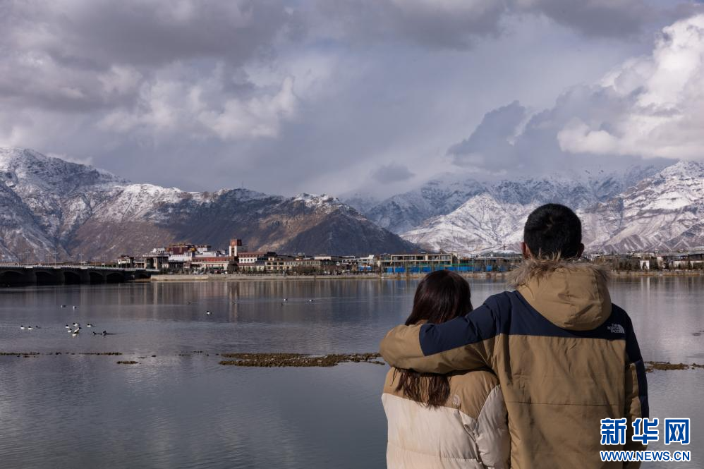 1月18日,游客在拉薩河邊觀賞雪景。新華網發 李騰 攝