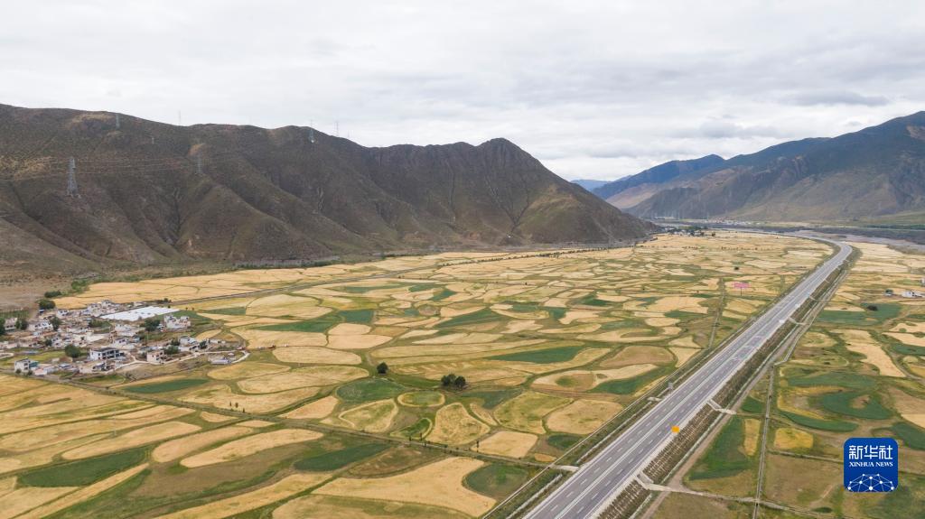 西藏拉薩市墨竹工卡縣唐加鄉(xiāng)的青稞田(8月27日攝)。新華社發(fā)(洛克攝)