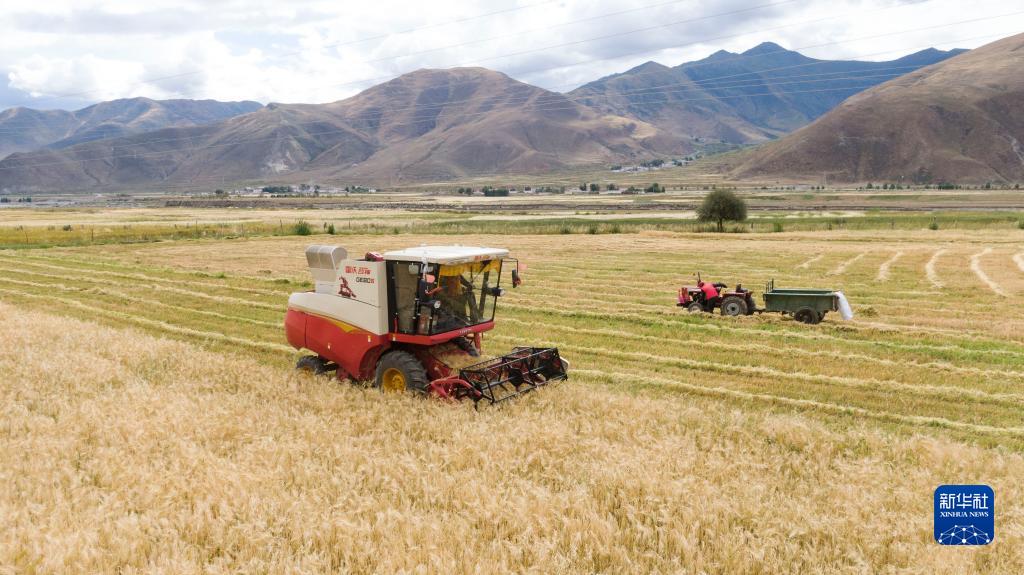 目前,西藏各地進(jìn)入秋收時節(jié)。西藏拉薩市墨竹工卡縣農(nóng)民在積極防疫的同時,抓緊收割青稞,確保顆粒歸倉。
