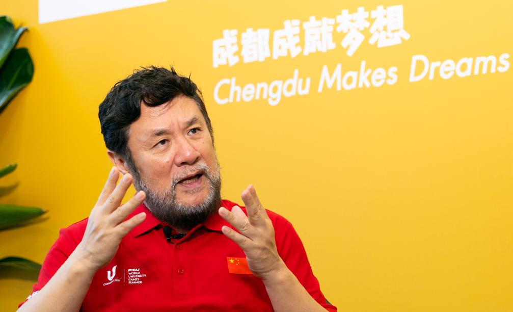 這是7月13日拍攝的成都第31屆世界大學生夏季運動會開幕式總導演陳維亞在接受采訪。 新華社記者 沈伯韓 攝
