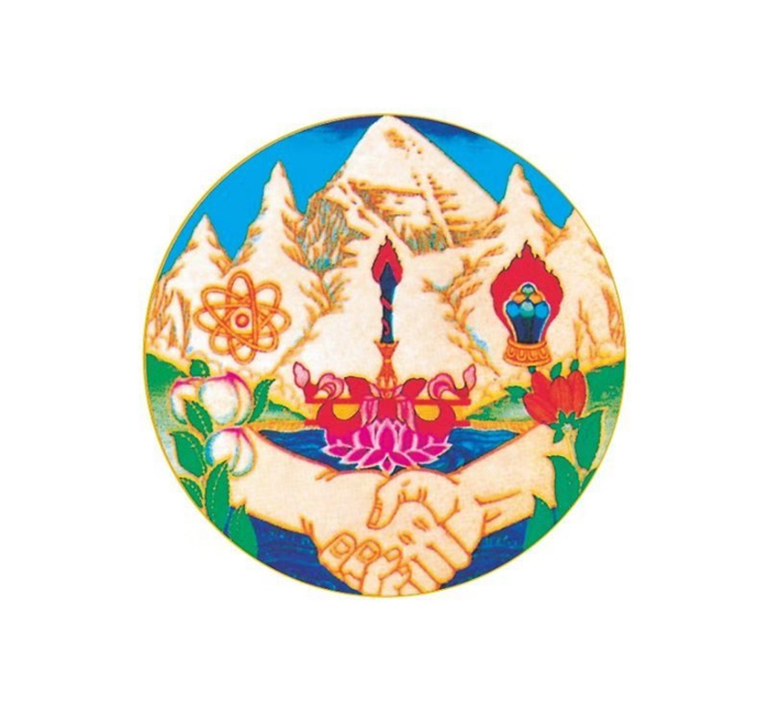 圖為十世班禪大師親自設計并請畫家洛松向秋付諸筆端的援助西藏發展基金會徽標。