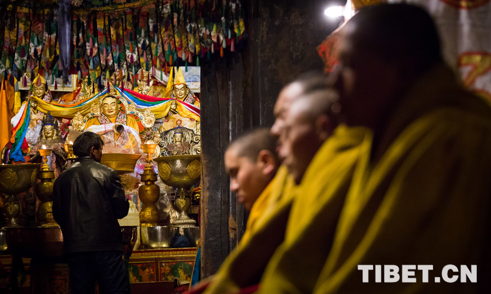 圖為扎寺僧人正在誦經。攝影:趙耀