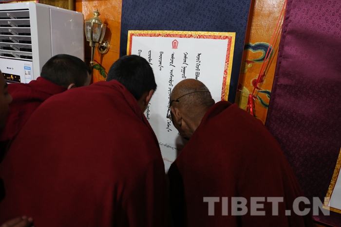 此次活動共征集書法作品80余幅,包含藏文、梵文、漢文、英文,其中藏文書法當中又有烏金和烏梅體、草書體和古藏文體等多種書法類型,不僅展現了藏文書法精美多樣的字體和悠久歷史,而且表達了全寺僧眾深切緬懷大師的至真感情和銘記大師教誨,積極發揚藏傳佛教愛國愛教優良傳統的堅定信心。(中國西藏網 記者/索朗加措、趙耀 圖片由扎什倫布寺寺管會提供)
