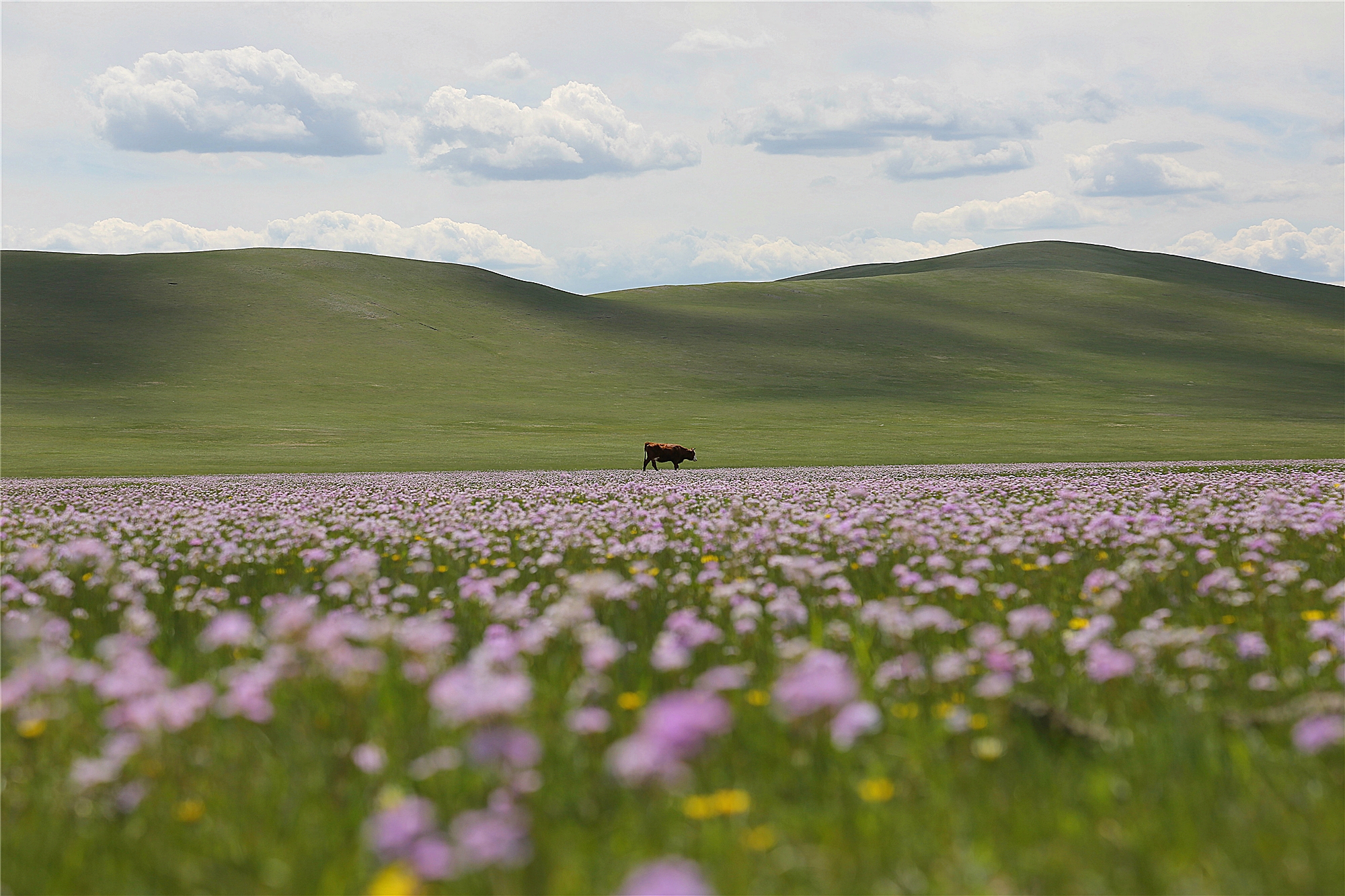 這是在扎魯特旗拍攝的草原花海(2020年6月5日攝)。進入夏季,內蒙古自治區通遼市扎魯特旗北部山地草原生機勃勃。