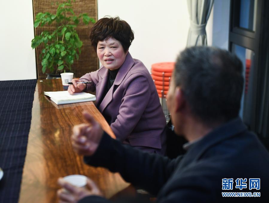 2月22日,全國人大代表、桐廬縣江南鎮環溪村黨總支副書記周忠蓮在桐廬縣鐘山鄉隴西村的村民家中,聽取村民對于鄉村環境提升、民宿業發展的建議和想法。新華社記者 徐昱 攝