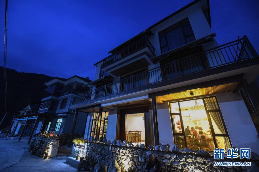 2月22日,桐廬縣鐘山鄉鄉賢代表、民宿業主代表、桐廬縣鄉兩級人大代表以及黨員和村民代表在鐘山鄉參加“新村夜話”討論活動(無人機照片)。新華社記者 徐昱 攝