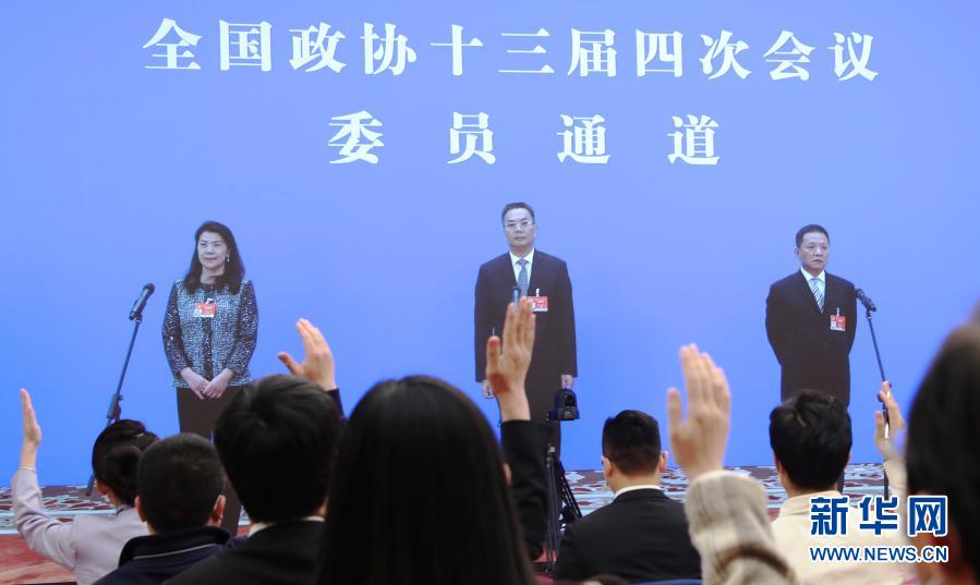 3月10日,全國政協(xié)十三屆四次會(huì)議第三場“委員通道”采訪活動(dòng)在北京人民大會(huì)堂新聞發(fā)布廳舉行。這是記者在分會(huì)場通過網(wǎng)絡(luò)視頻方式提問。新華社記者 李木子 攝